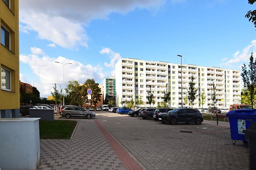 Okolí domu prošlo revitalizací, je zde dostatek parkovacích míst, dětské hřiště, 4 minuty chůze obchod.