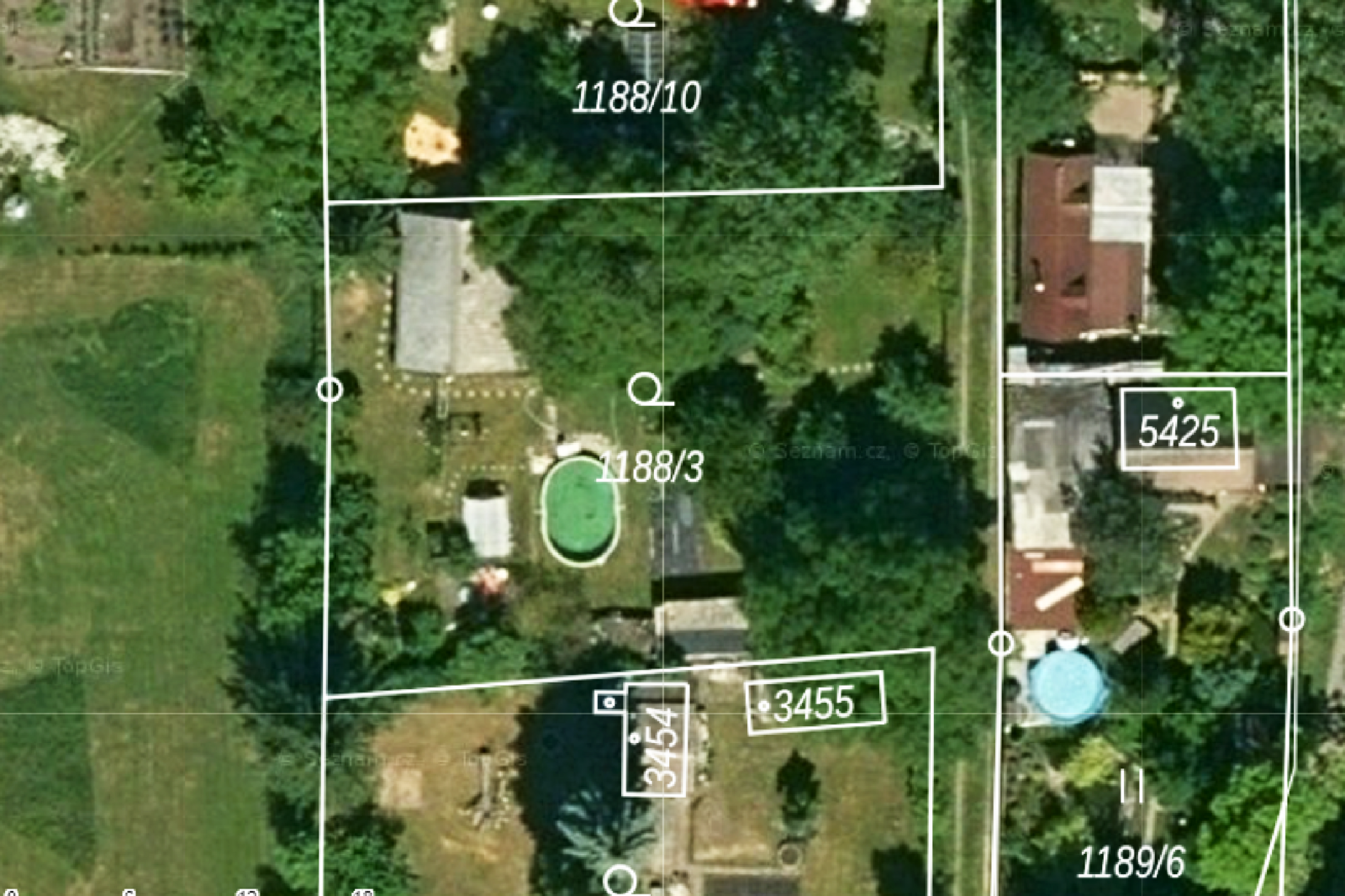 Tento pozemek je zapsaný na LV 457, par. č. 1188/3, druh pozemku zahrada. Na pozemku dle územního plánu není možno stavět.